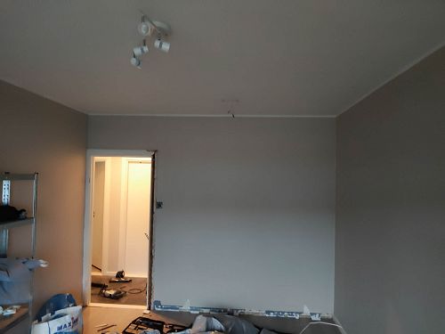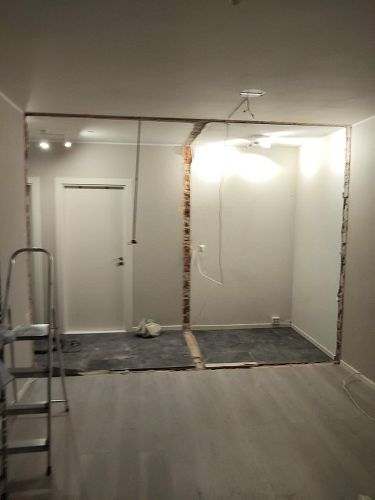 Etter rivning av teglvegg med puss